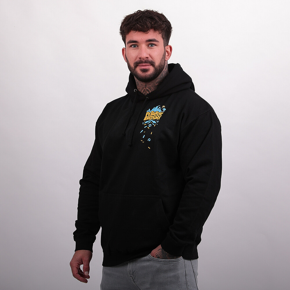 Kvalitní mikina unisexového střihu s velkou kapsou na přední straně a s kapucí se stahovací šňůrkou.